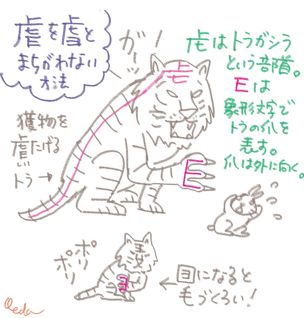 「虐」という漢字を書き間違える学生さんが多いというので、覚え方を公開しておきます。