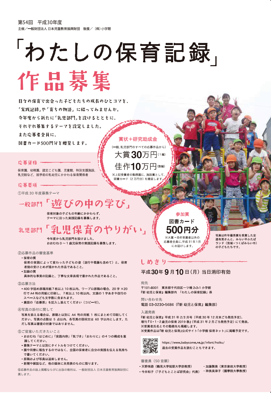 毎年恒例の小学館主催、保育記録の募集がはじまっています!