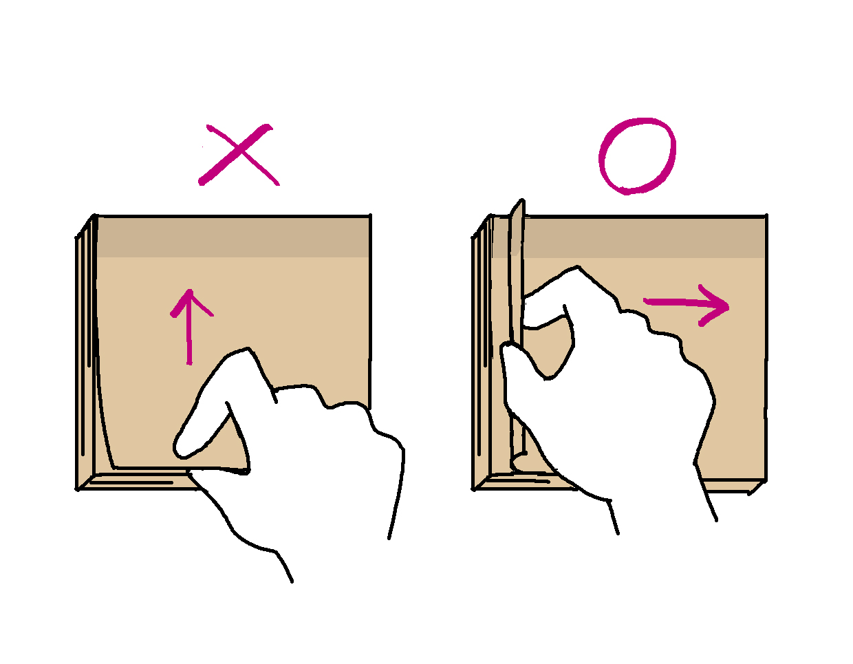 「本体からめくり取るとき、下から上ではなく、真横に取る」