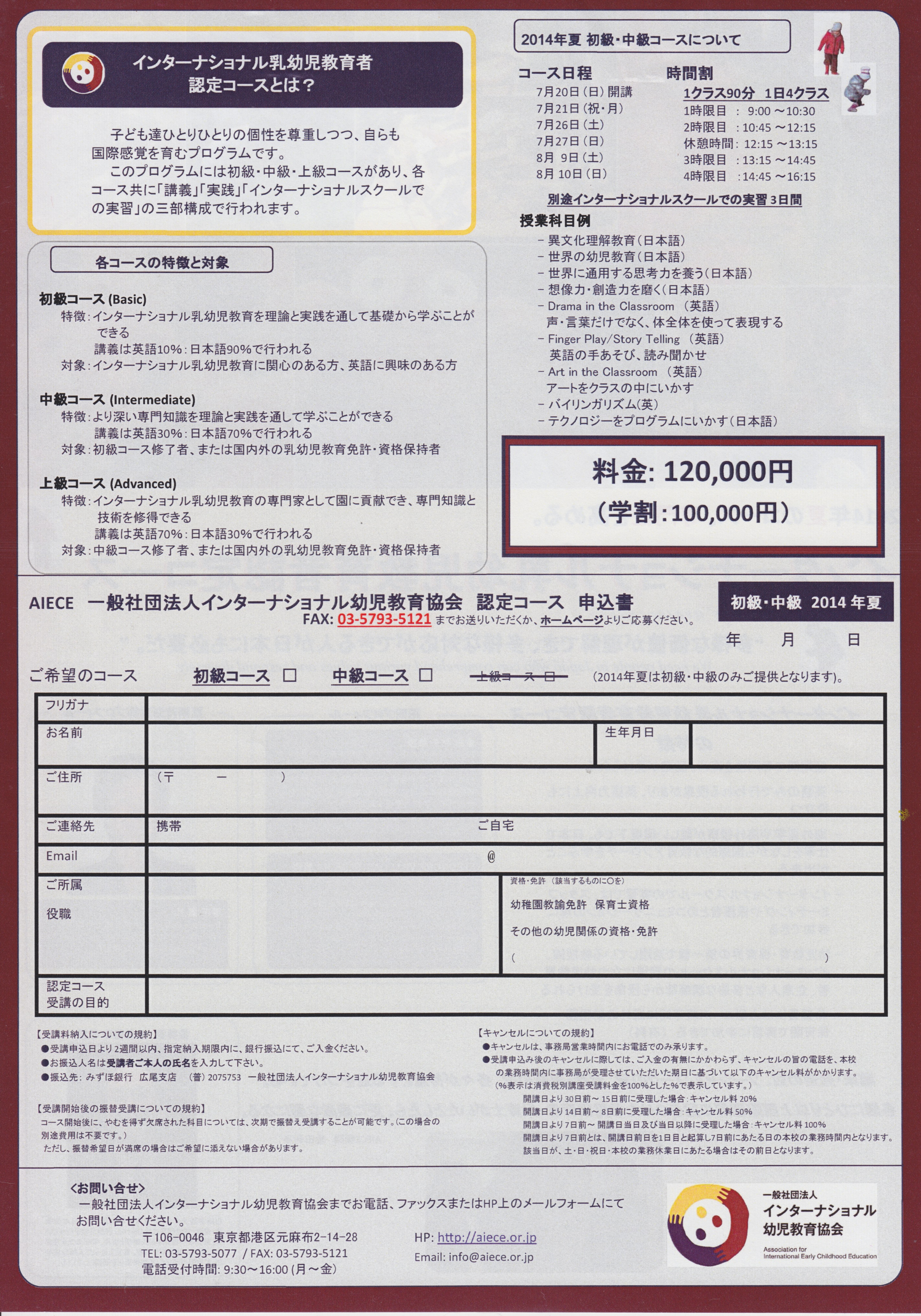 「レミダ」と、インターナショナル乳幼児教育協会の講座 2014年夏