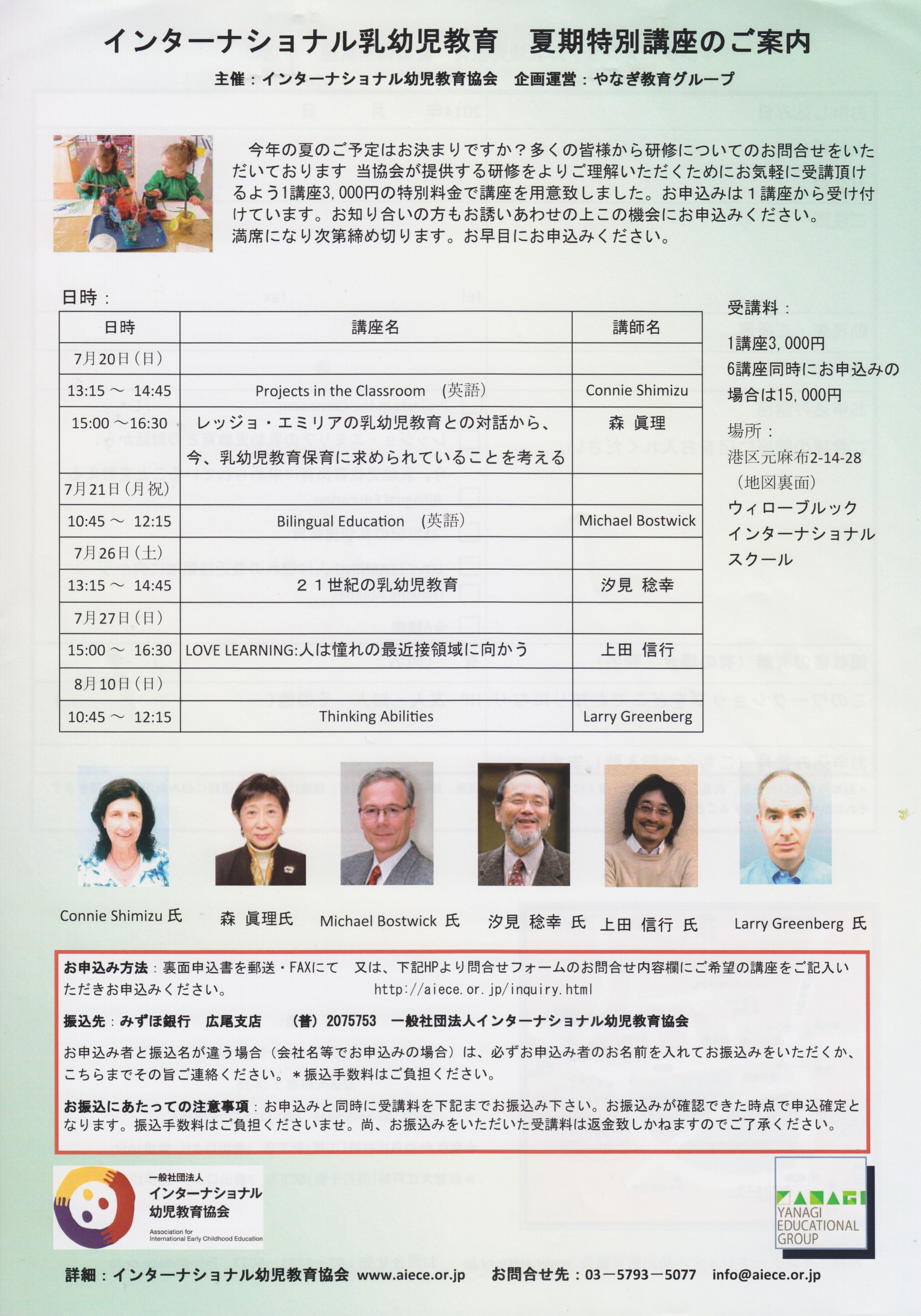 一つは、連続のインターナショナル乳幼児教育者認定講座。