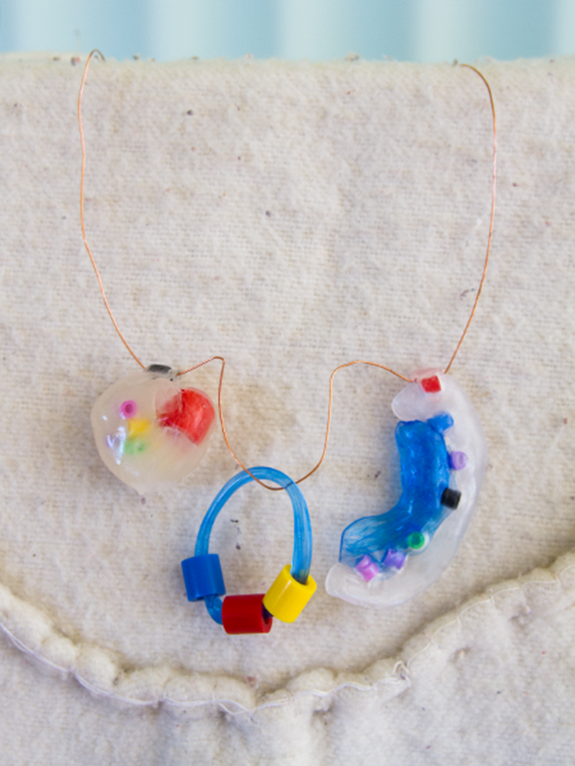 透明粘土とハマビーズを使って作った アクセサリー、ペンダントです。